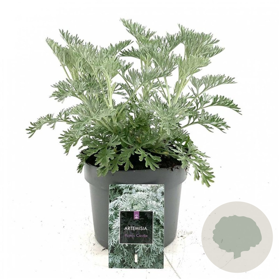 Toelichting | Bijvoet 'Powis Castle' is een prachtige plant met zilvergrijs blad en gele bloemen. Deze plant bloeit van juli tot september en gedijt het beste in zonnige, goed doorlatende grond. Perfect voor een mediterrane tuin! |