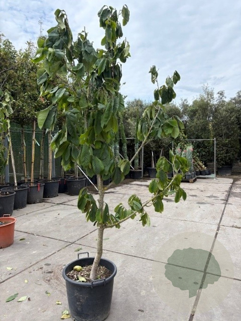 ToelichtingDe Pawpaw (Asimina triloba) is een exotische fruitboom met paarse bloemen en groen blad. Hij bloeit in mei - juni en gedijt goed in zon en halfschaduw op zandgrond, lichte klei of neutrale grond. Perfect voor een tropische touch in je tuin!