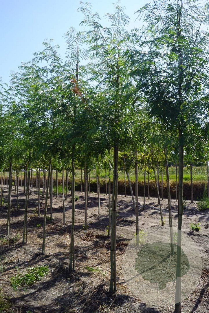 Gleditsia triacanthos 'Emerald Cascade' (Valse Christusdoorn) – hoogstam 10-12 cm, containergekweekt. Elegante solitairboom met afhangende takken, frisgroen blad en goudgele herfstverkleuring.