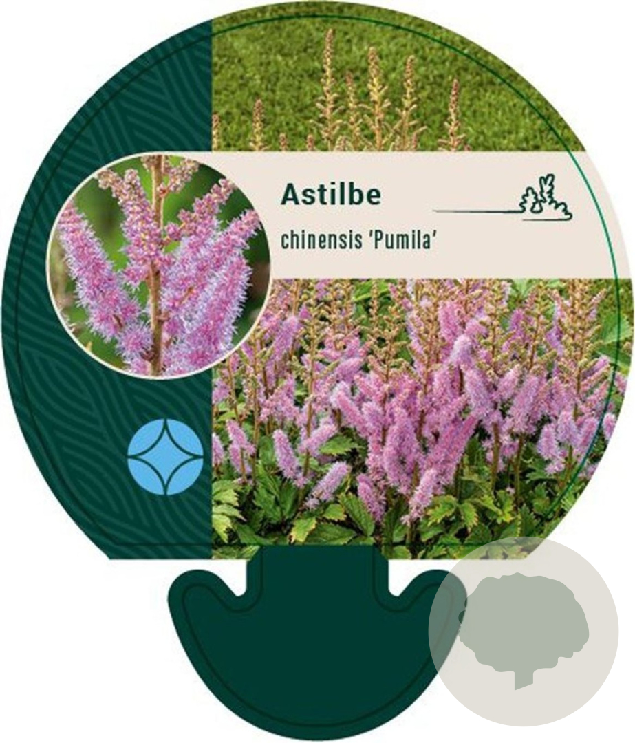 | Toelichting | Astilbe 'Pumila' is een prachtige vaste plant met roze bloemen en groen blad. Deze plant bloeit in de zomermaanden juni en juli en gedijt het beste op een standplaats in de halfschaduw. Perfect voor lichte klei, neutrale of humusrijke grond. |