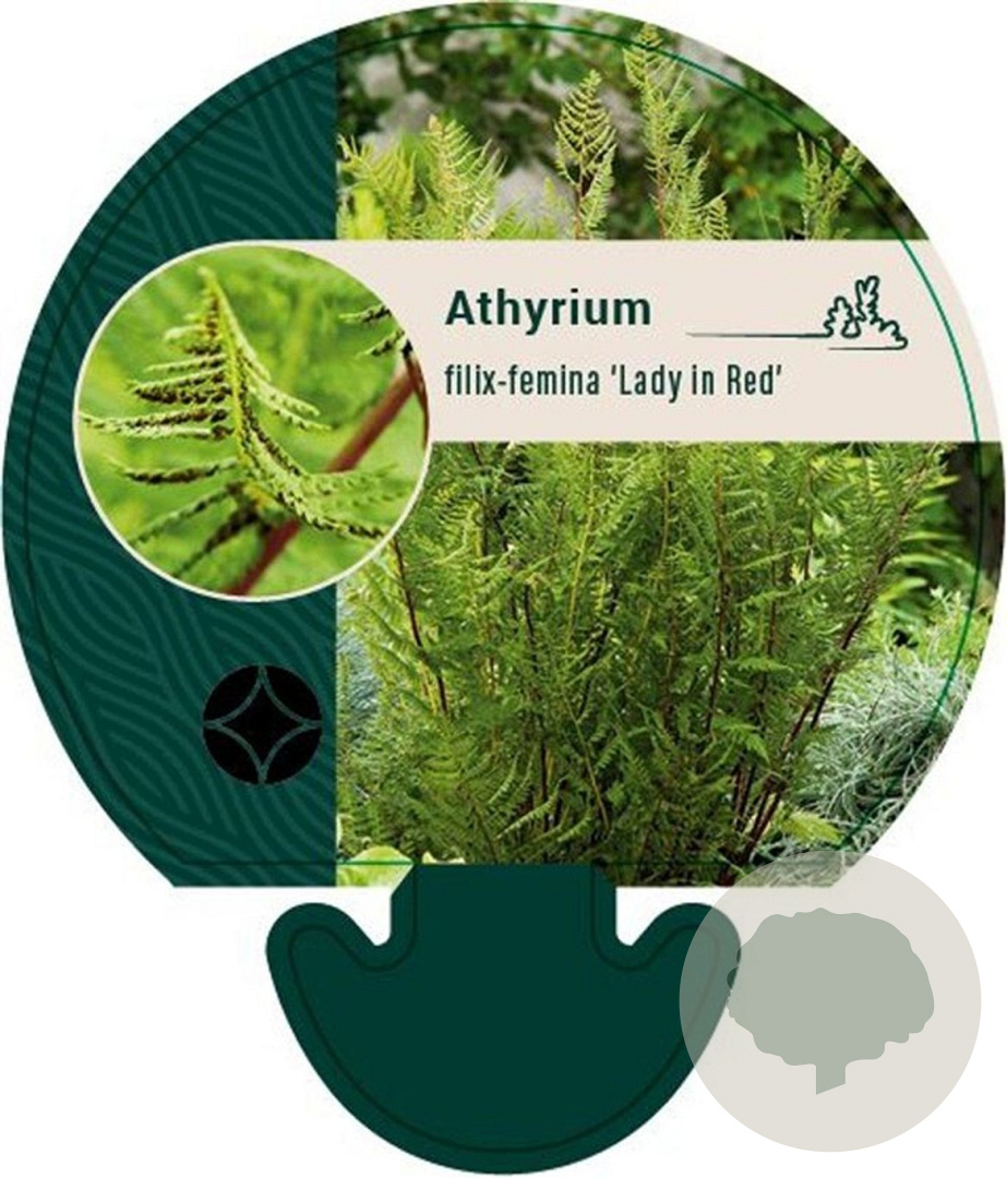 ToelichtingAthyrium f.-f. 'Lady in Red' is een prachtige varen met groene bladeren en een bordeauxrode steel. Deze varen bloeit in de zomermaanden en gedijt goed in de schaduw op humusrijke bosgrond.