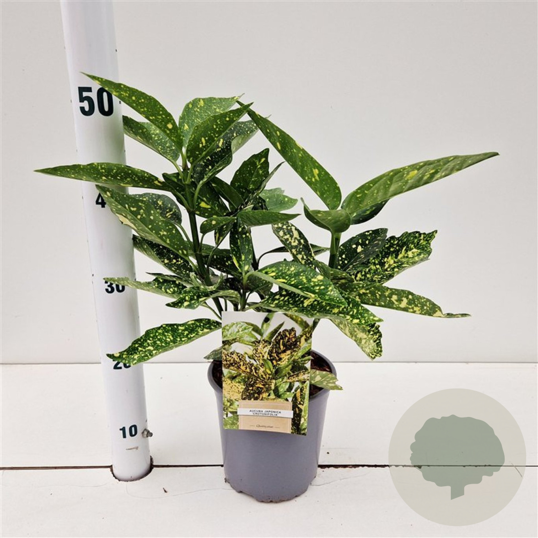 | Toelichting | Aucuba, met zijn opvallende groene bladeren en paarse bloemen in april en mei, gedijt het best in halfschaduw op zure en humusrijke grond. Deze struik kan een hoogte bereiken van 150 cm en voegt kleur toe aan elke tuin. |