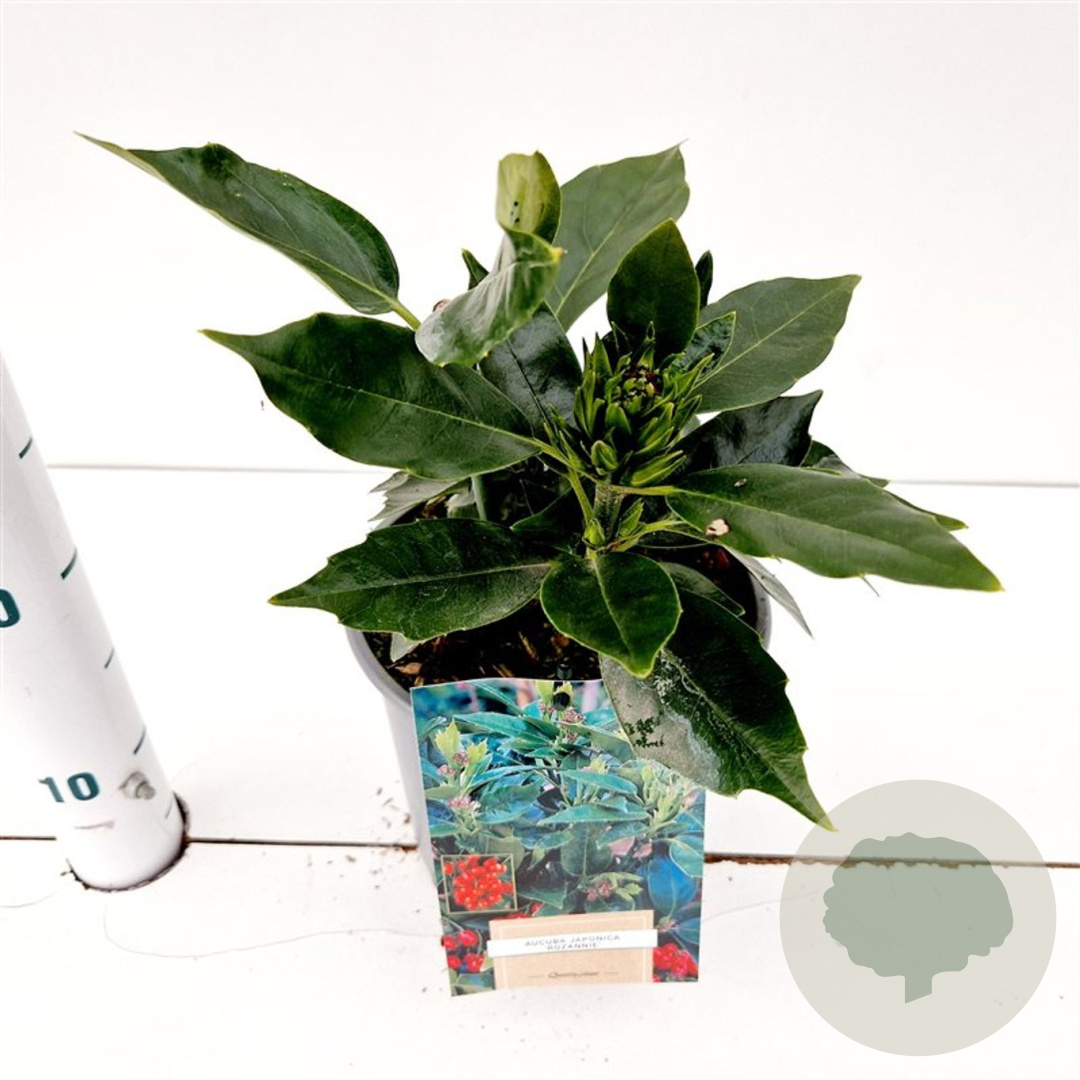 | Toelichting | Aucuba, ook wel bekend als Japanse broodboom, is een groenblijvende struik met opvallend glanzend groen blad. De plant bloeit in mei-juni met onopvallende bloemen en gedijt goed in de schaduw op zure, neutrale of humusrijke grond. |