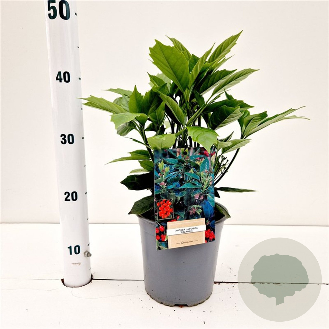 | Toelichting | Aucuba, ook wel bekend als Japanse broodboom, is een groenblijvende struik met opvallend glanzend groen blad. De plant bloeit in mei-juni met onopvallende bloemen en gedijt goed in de schaduw op zure, neutrale of humusrijke grond. |