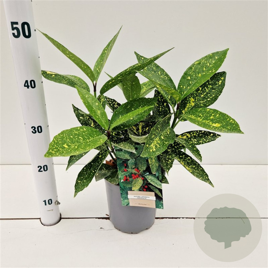| Toelichting | De Broodboom (Aucuba japonica 'Variegata') is een prachtige struik met groene bladeren en paarse bloemen. Deze plant bloeit in april en mei en gedijt goed in de schaduw op zure en humusrijke grond. Ideaal voor een sfeervolle tuin! |