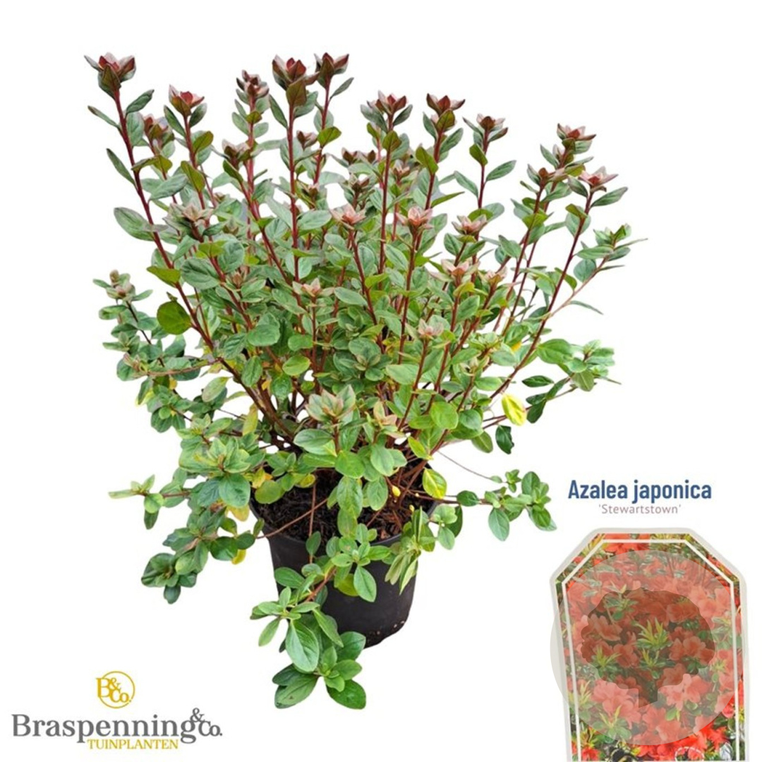 | Toelichting | De Azalea 'Stewartstown' is een prachtige struik met rode bloemen en groen blad. Deze azalea bloeit in april en mei en gedijt het beste in de halfschaduw op zure en humusrijke grond. De volwassen hoogte van deze plant is ongeveer 150 cm. |
