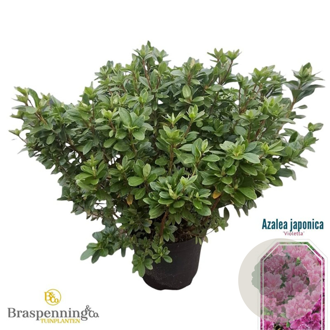 | Toelichting | De Azalea 'Violetta' is een prachtige struik met paarse bloemen en groen blad. Deze azalea bloeit in april en mei en gedijt het beste in de halfschaduw op zure en humusrijke grond. Met een volwassen hoogte van 150 cm is het een echte blikvanger in de tuin. |
