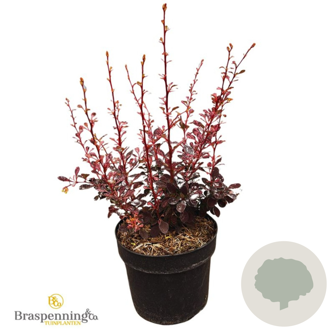 | Toelichting | Berberis 'Harlequin' is een opvallende struik met groen blad en roze strepen. In het voorjaar bloeit de plant met gele bloemen. Geschikt voor zon en halfschaduw in voedselrijke, neutrale grond. Bereikt een hoogte van 150 cm en bloeit in april-mei. |