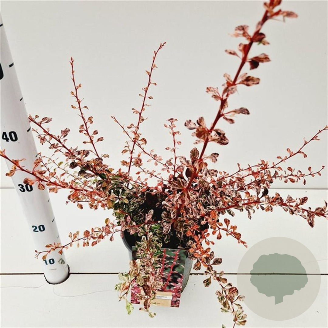 | Toelichting | Berberis 'Harlequin' is een opvallende struik met groen blad en roze strepen. In het voorjaar bloeit de plant met gele bloemen. Geschikt voor zon en halfschaduw in voedselrijke, neutrale grond. Bereikt een hoogte van 150 cm en bloeit in april-mei. |