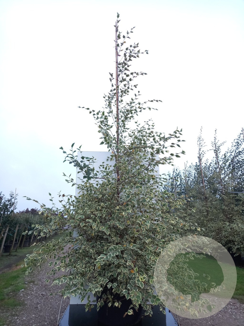 | Toelichting | De Rivierberk 'Shiloh Splash' is een prachtige boom met groen-wit gevlekt blad en gele bloemen in april - mei. Deze boom gedijt goed in zon en halfschaduw op lichte klei, zure of humusrijke grond. Bereikt een volwassen hoogte van 800 cm. |