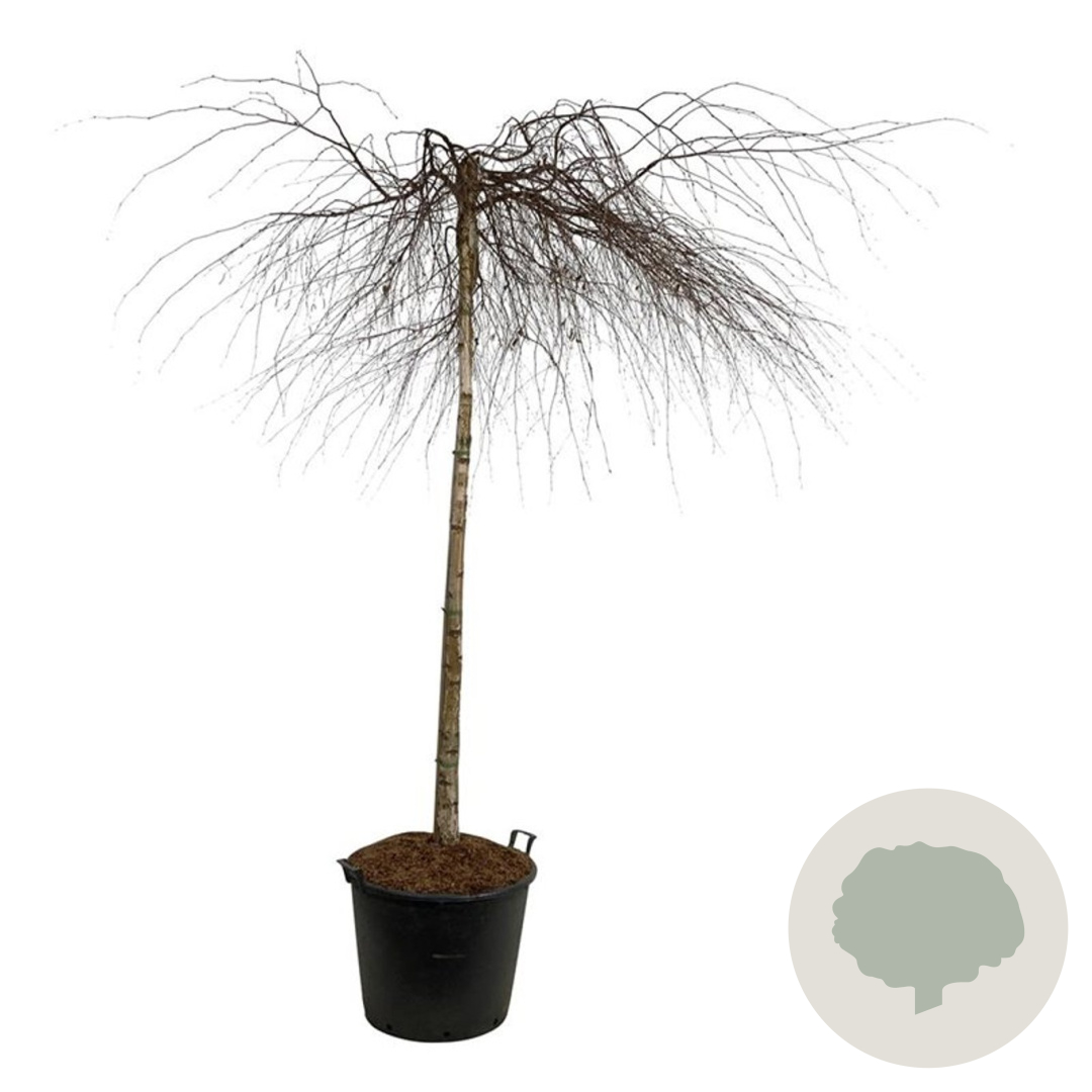 | Toelichting | De Betula pendula 'Youngii', ook wel bekend als de Rode treurberk, is een prachtige boom met hangende takken en groen blad. In het voorjaar bloeit deze boom met geelkleurige bloemen en bereikt een hoogte van ongeveer 300 cm. Perfect voor een zonnige standplaats in zand- of neutrale grond. |