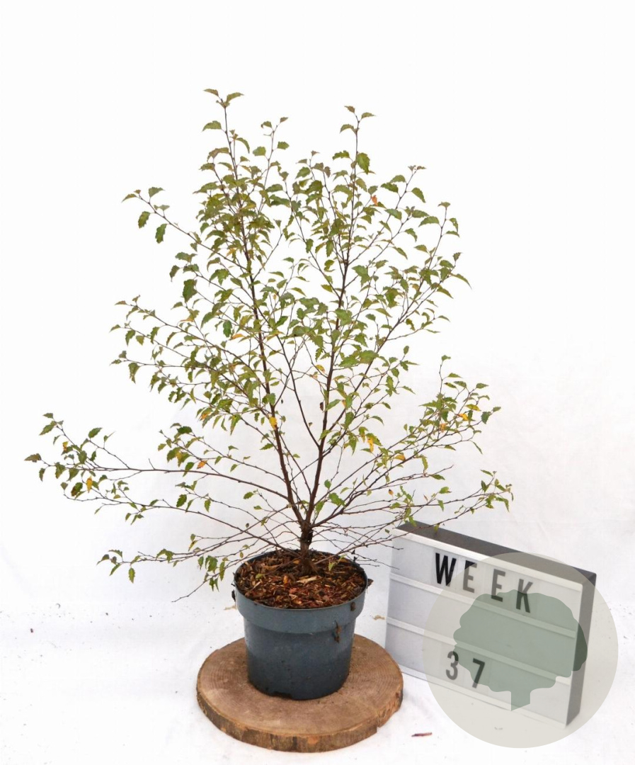 | Toelichting | De Ruwe berk is een inheemse boom met groen blad en geel bloeiende katjes in april en mei. Deze boom gedijt goed in zonnige tot halfschaduwrijke omgevingen op zandgrond, lichte klei en zure grond. |