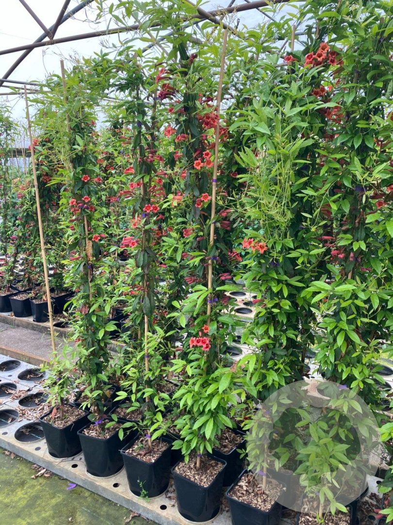 | Toelichting | De klimmende trompetbloem (Bignonia capreolata 'Atrosanguinea') is een prachtige klimplant met rode trompetvormige bloemen die bloeien van juni tot augustus. Deze plant gedijt het beste in zonnige tot halfschaduwrijke standplaatsen op zandgrond, lichte klei of neutrale grond. |
