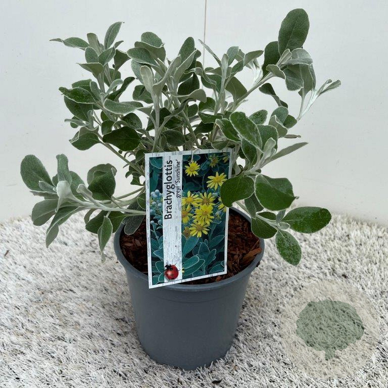 | Toelichting | Brachyglottis 'Sunshine' is een compacte plant met felgele bloemen en groen blad. Bloeit van juni tot augustus en gedijt goed in zon en halfschaduw op zand- of neutrale grond. Perfect voor een zonnige border of rotstuin. |