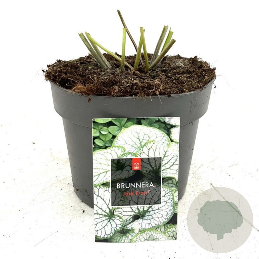| Toelichting | Het Kaukasisch vergeet-mij-nietje (Brunnera macr. 'Jack Frost') is een prachtige bodembedekker met opvallend zilvergroen blad en blauwe bloemen in april en mei. Perfect voor halfschaduw en gedijt goed in lichte klei en humusrijke grond. |