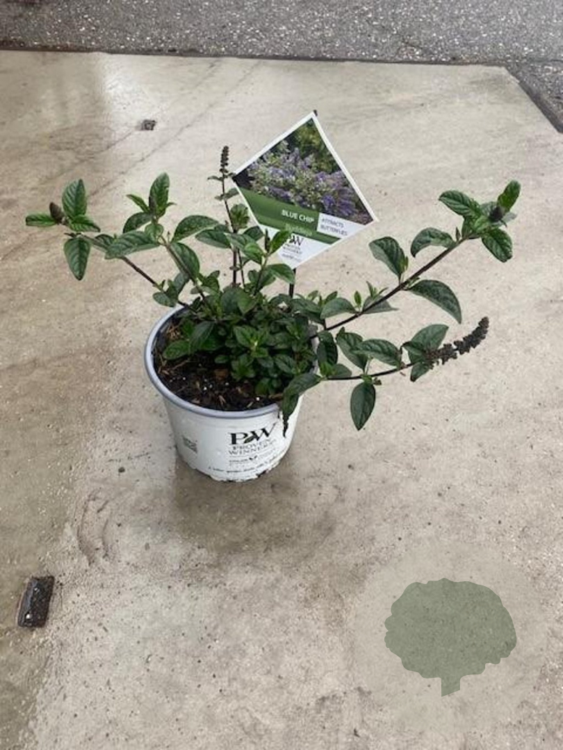 Toelichting | De Vlinderstruik 'Blue Chip' is een compacte struik met paarse bloemen die vlinders aantrekken. Hij bloeit van juli tot september en gedijt het beste in zonnige standplaatsen met goede tuingrond. Perfect voor tuinen met beperkte ruimte. |
