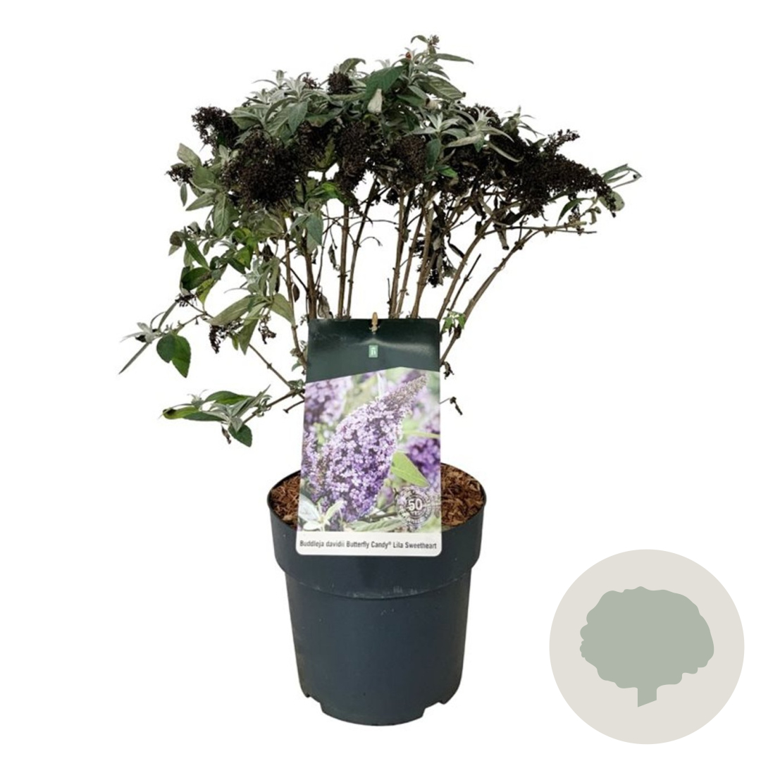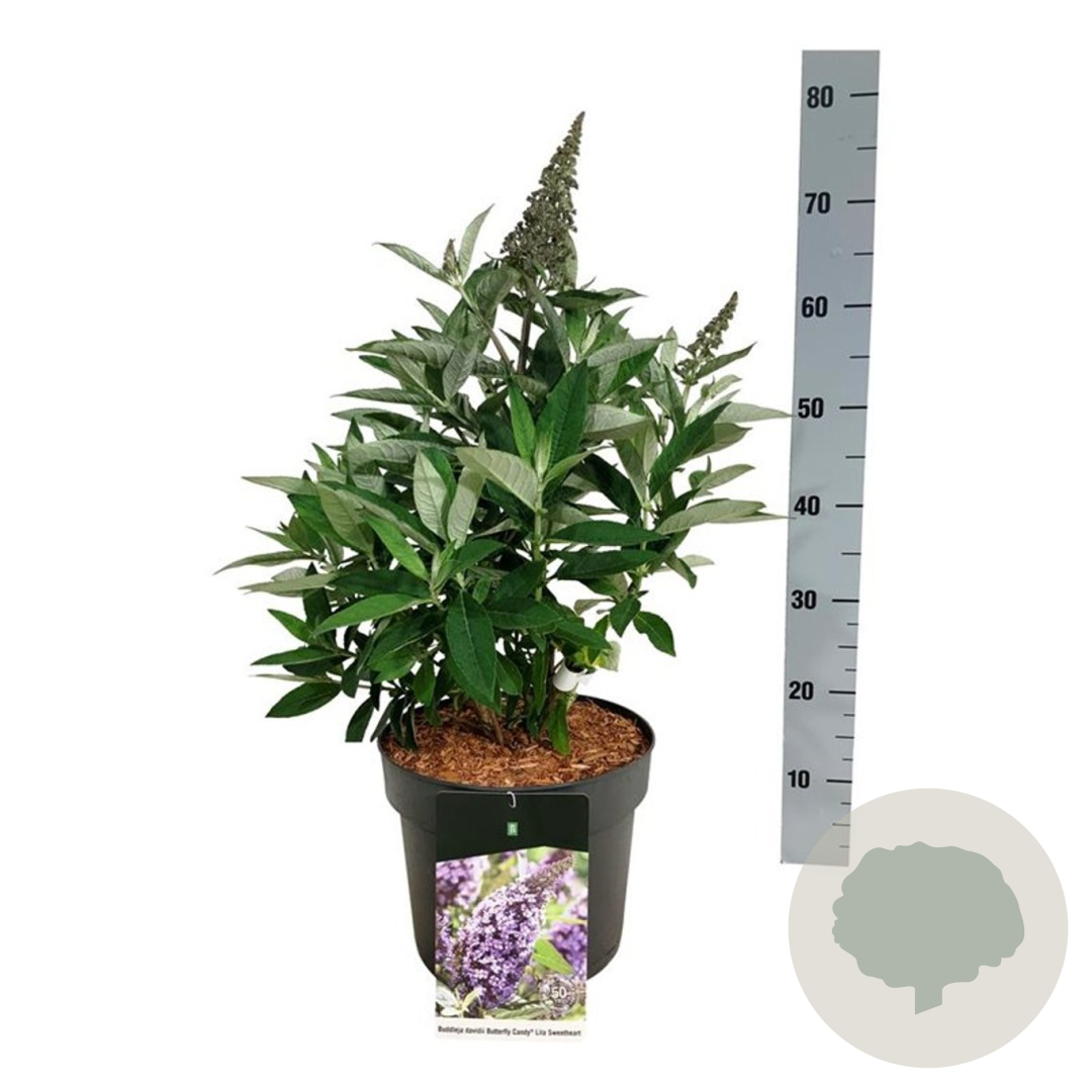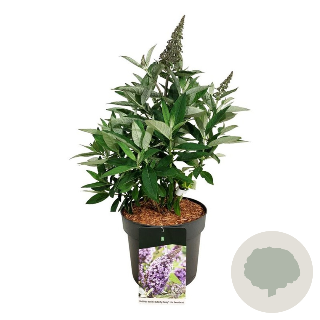 | Toelichting | De Vlinderstruik (Buddleja) 'Candy Lila Sweeth' is een prachtige struik met lila bloemen die vlinders aantrekken. Deze struik bloeit van juli tot september en wordt ongeveer 200 cm hoog. Plant de Vlinderstruik in goed doorlatende, vochtige grond op een zonnige plek. |