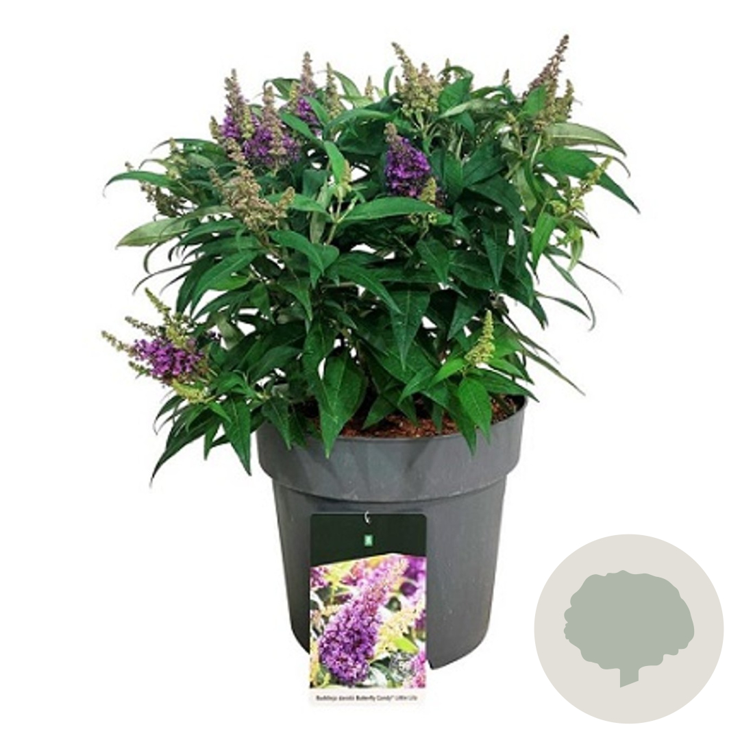 | Toelichting | De Vlinderstruik 'Candy Little Lila' is een compacte struik met prachtige lila bloemen die vlinders aantrekken. Deze bloeit van juli tot september en staat graag in de zon in goede tuingrond. De struik wordt ongeveer 100-150 cm hoog en heeft groen blad. |