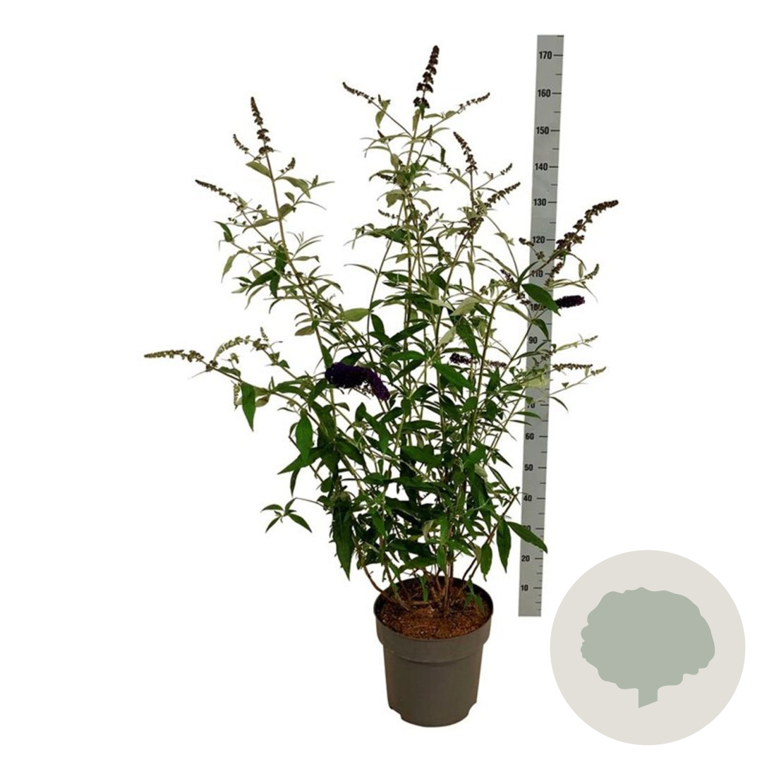 | Toelichting | De Vlinderstruik (Buddleja d. 'Black Knight') is een prachtige struik met donkerpaarse bloemen die vlinders aantrekken. Deze struik bloeit van juli tot september en bereikt een hoogte van 200 cm. Plant hem in zonnige, goed doorlatende grond voor het beste resultaat. |