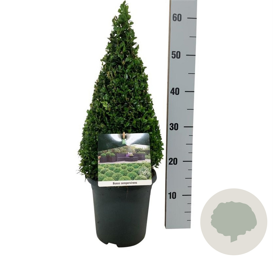 | Toelichting | De Buxus, ook wel bekend als Palmboompje, is een groenblijvende struik met donkergroene bladeren en gele bloemen in april en mei. Perfect voor zon en halfschaduw op zand-, klei- en neutrale grond. Bereikt een hoogte van 150 cm. |