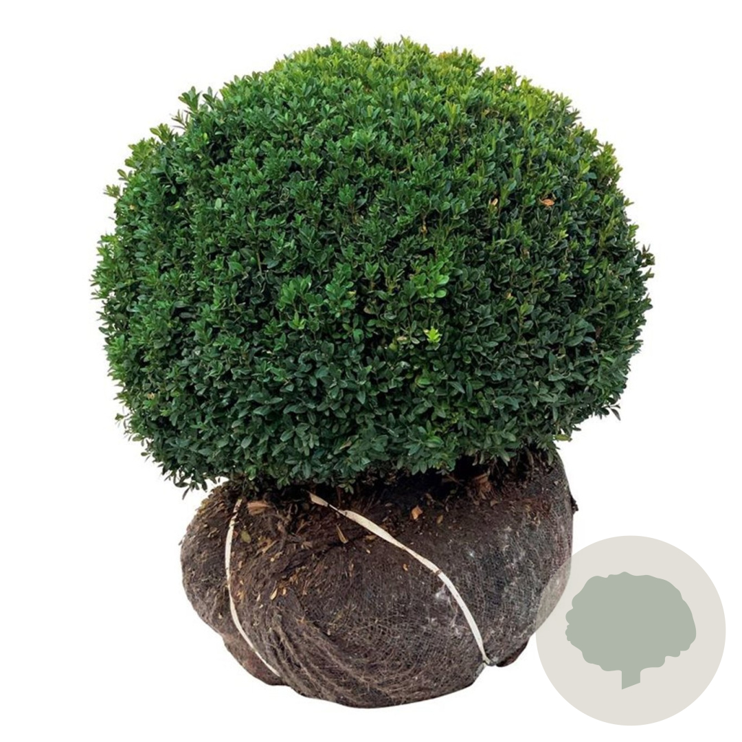 ToelichtingDe Buxus, ook wel bekend als Palmboompje, is een groenblijvende struik met donkergroene bladeren en gele bloemen in april en mei. Perfect voor zon en halfschaduw op zand-, klei- en neutrale grond. Bereikt een hoogte van 150 cm.
