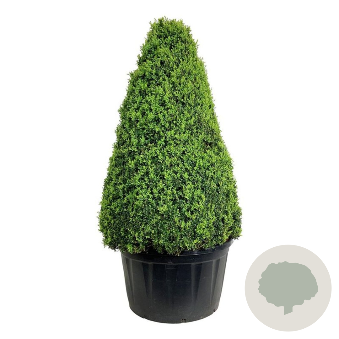 | Toelichting | De Buxus, ook wel bekend als Palmboompje, is een groenblijvende struik met donkergroene bladeren en gele bloemen in april en mei. Perfect voor zon en halfschaduw op zand-, klei- en neutrale grond. Bereikt een hoogte van 150 cm. |