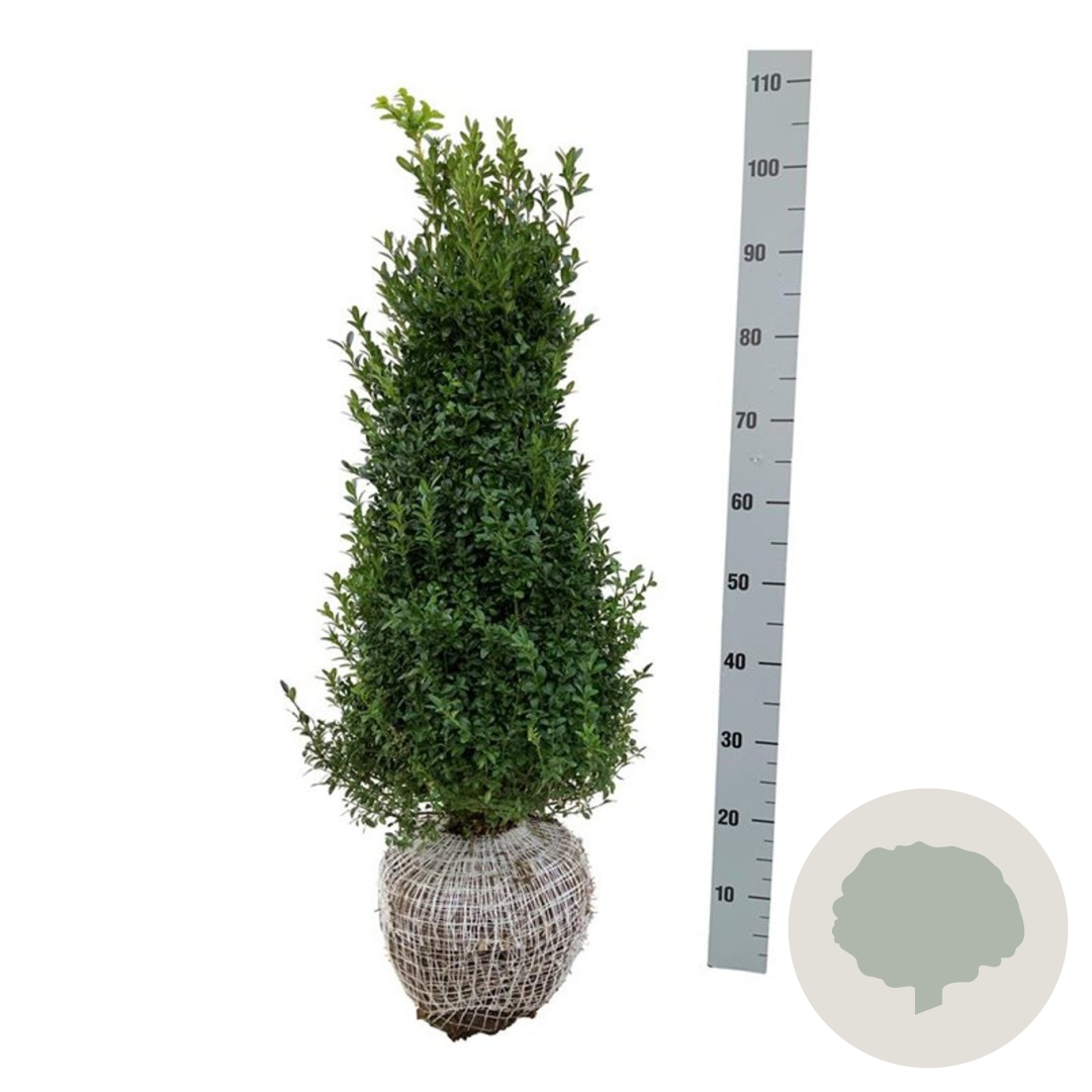 | Toelichting | De Buxus, ook wel bekend als Palmboompje, is een groenblijvende struik met donkergroene bladeren en gele bloemen in april en mei. Perfect voor zon en halfschaduw op zand-, klei- en neutrale grond. Bereikt een hoogte van 150 cm. |