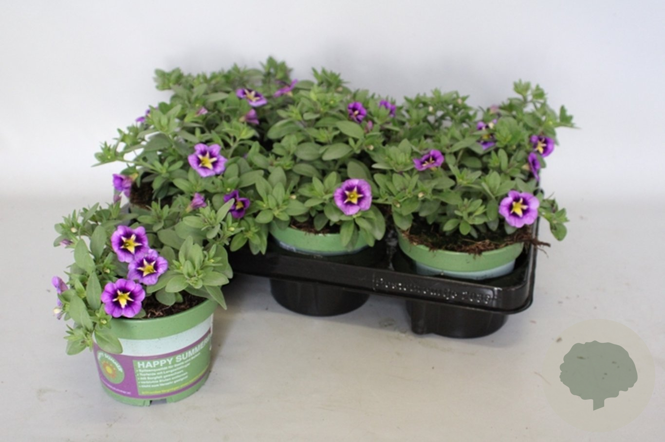 ToelichtingCalibrachoa, ook bekend als mini-petunia, is een prachtige bloeier met blauwe bloemen en groen blad. Deze plant bloeit van mei tot september en gedijt goed in zon en halfschaduw op goede tuingrond of humusrijke grond.