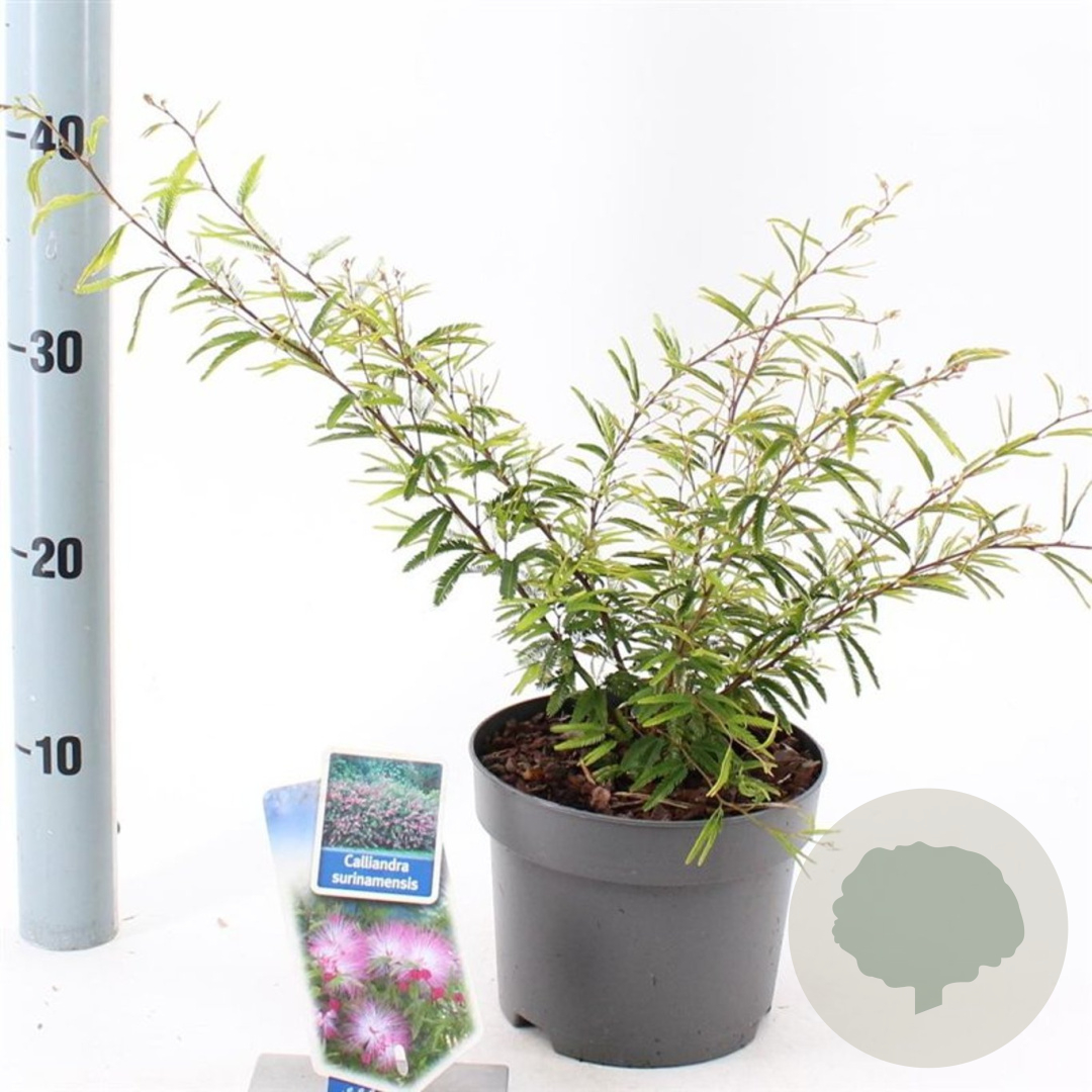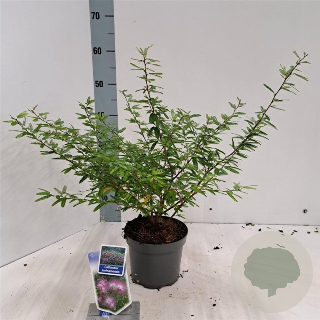 | Toelichting | Calliandra, ook wel bekend als Poederkwast, is een prachtige plant met roze bloemen en groen blad. Deze plant bloeit van juni tot september en gedijt goed in zonnige tot halfschaduwrijke omgevingen met neutrale tot goede tuingrond. |