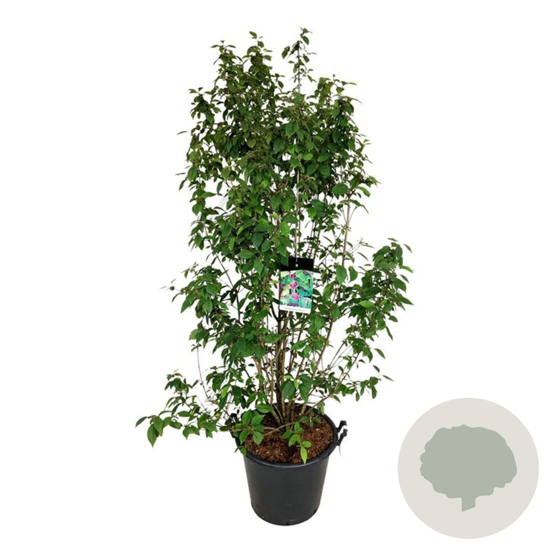 | Toelichting | De Callicarpa bodinieri 'Profusion', ook wel bekend als Schoonvrucht 'Profusion', is een prachtige heester met paarse bloemen in de zomer. De plant wordt ongeveer 150 cm hoog en gedijt het beste in zon en halfschaduw op neutrale, goede tuingrond met humus. |