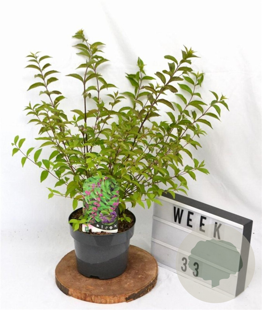 | Toelichting | De Schoonvrucht (Callicarpa dich. 'Issai') is een prachtige struik met roze bloemen en groen blad. In de zomer bloeit deze plant uitbundig en trekt vlinders aan. Geschikt voor zonnige en halfschaduwrijke plekken in neutrale, voedselrijke en humusrijke grond. |