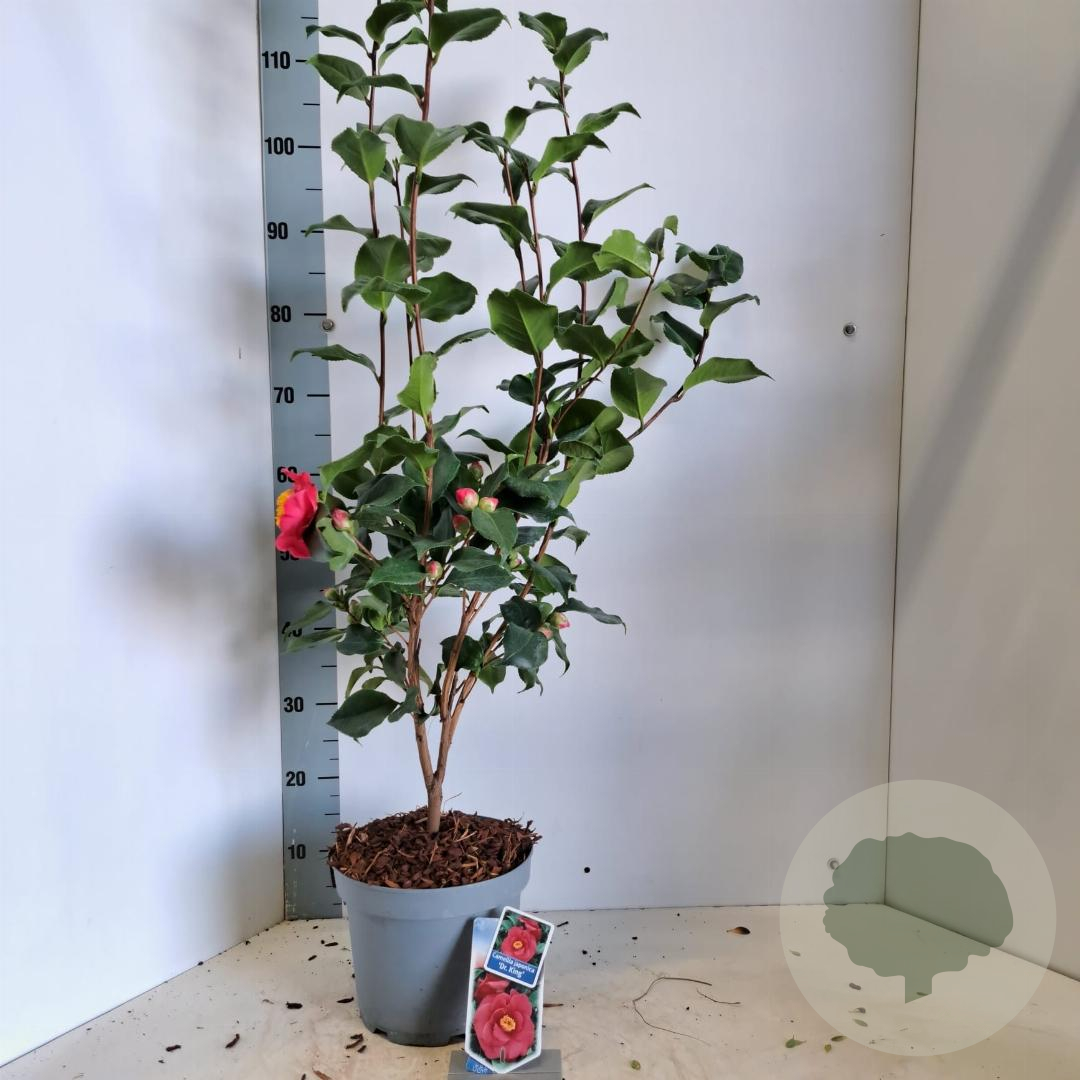| Toelichting | De Camelia 'Dr King' is een prachtige struik met donkergroene bladeren en roze bloemen die bloeien in maart en april. Deze niet-inheemse plant gedijt het beste in halfschaduw op zure, voedselarme en humusrijke grond. Bereikt een volwassen hoogte van 200 cm. |