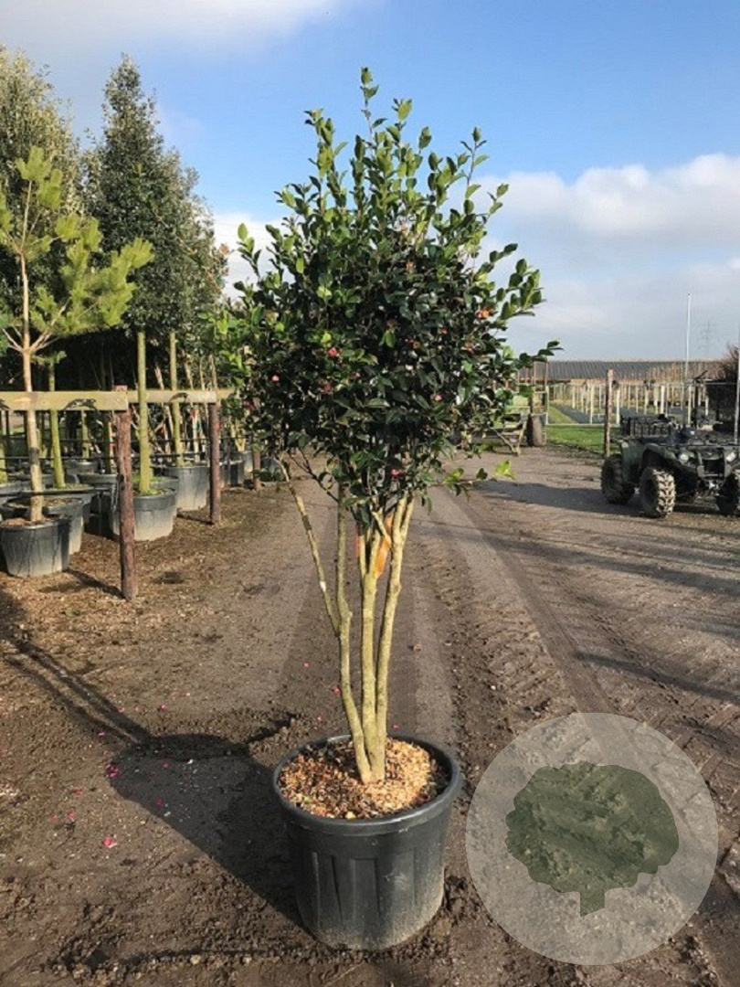 | Toelichting | De Camelia is een prachtige struik met donkergroene bladeren en roze bloemen die bloeien van februari tot april. Deze niet-inheemse plant gedijt het beste in halfschaduw op zure en humusrijke grond. |
