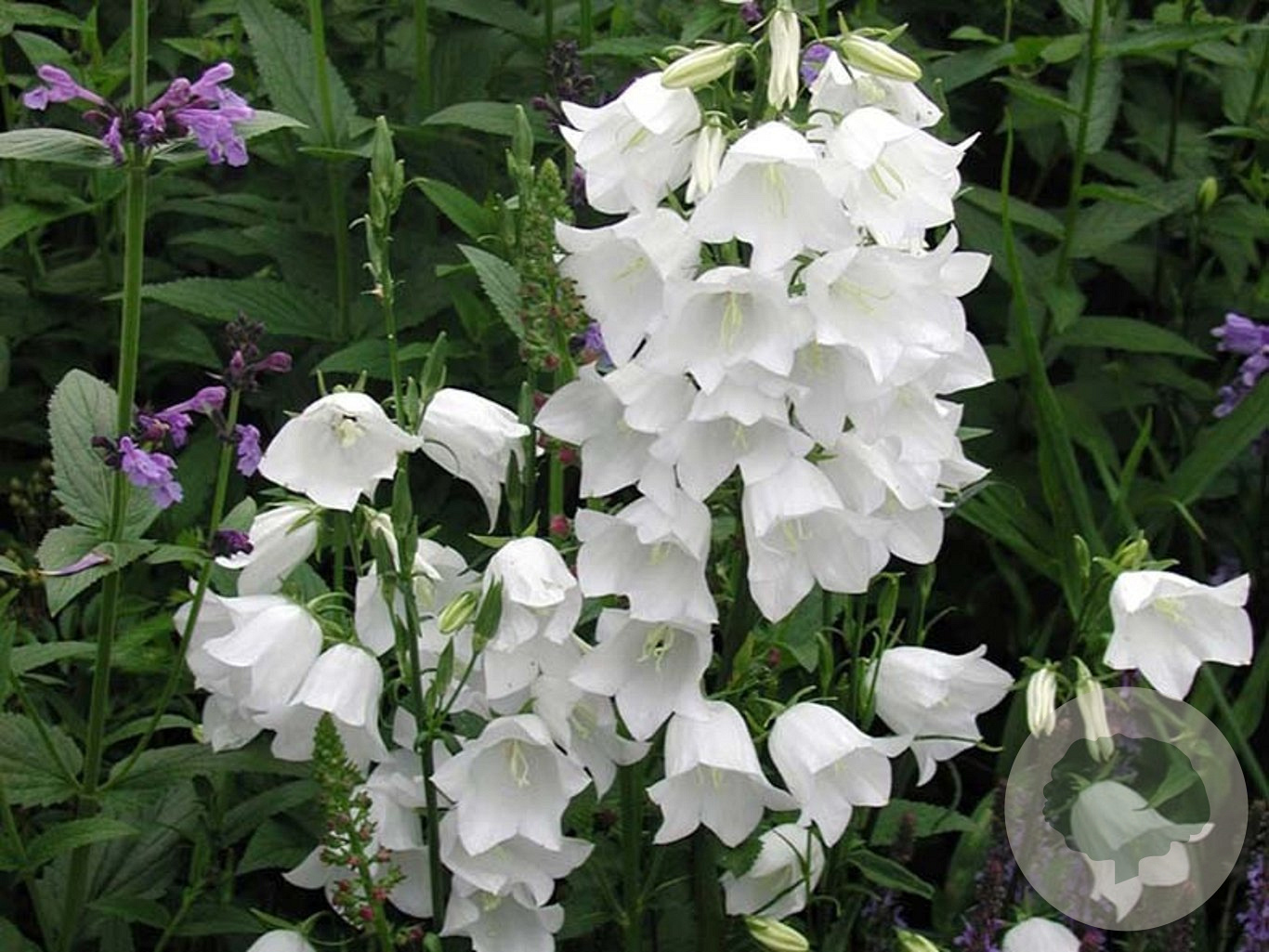 | Toelichting | De Klokjesbloem 'Grandiflora Alba' is een prachtige vaste plant met witte klokvormige bloemen. Deze bloeien van juni tot augustus en staan graag in de zon of halfschaduw op lichte klei, neutrale grond of goede tuingrond. De plant wordt ongeveer 30 cm hoog en trekt vlinders aan. |