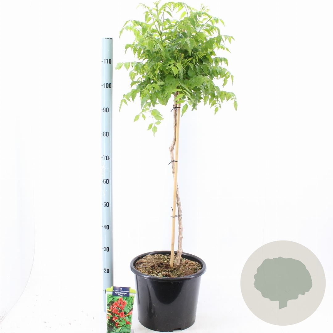| Toelichting | De Kamperfoelie (Campsis t. Fire Trumpet) is een prachtige klimplant met opvallende oranje bloemen. Deze plant bloeit van juli tot september en gedijt het beste in zonnige standplaatsen met goede tuingrond. Een echte eyecatcher in de tuin! |