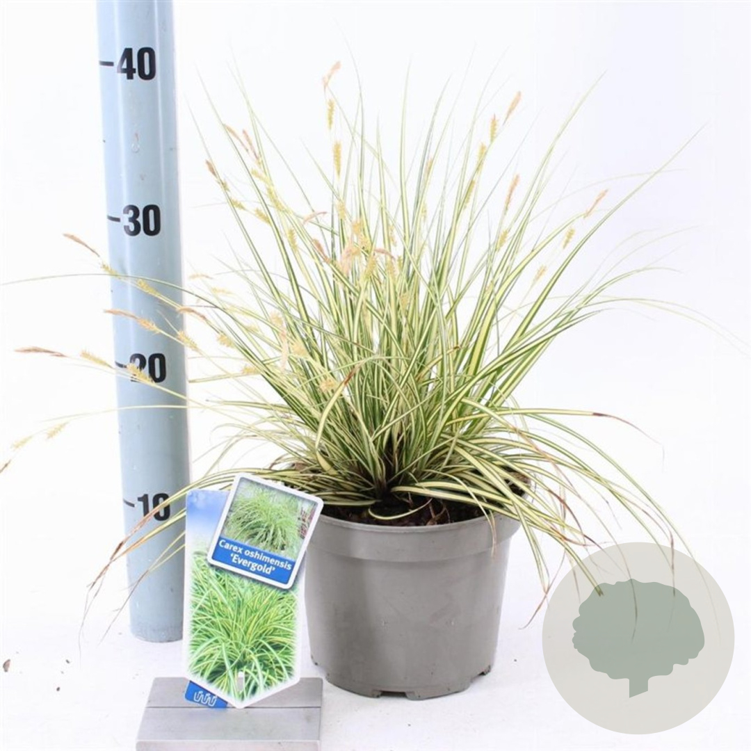 | Toelichting | De Carex oshim. 'Evergold', ook bekend als Zegge, is een siergras met opvallend geelgroen blad. Het bloeit in mei-juni en gedijt goed in zon en halfschaduw op lichte klei, zure of humusrijke grond. Bereikt een hoogte van 30 cm. |