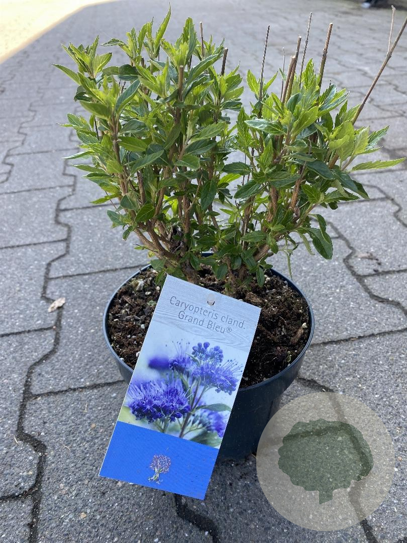 | Toelichting | De Blauwe spirea (Caryopteris cland. Grand Bleu) is een compacte struik met blauwe bloemen die bloeien in augustus en september. Deze plant gedijt het beste in de volle zon en op zandgrond, neutrale grond of goede tuingrond. |