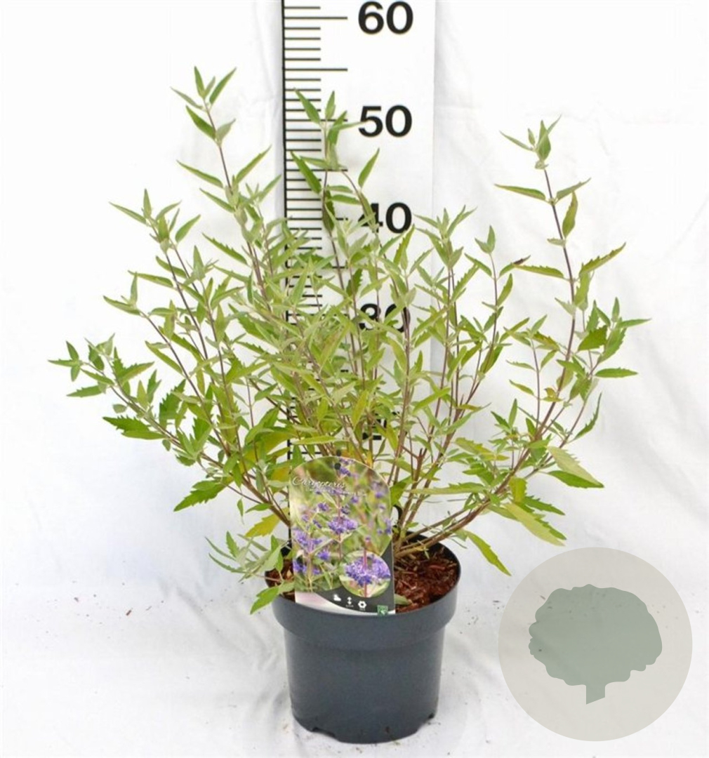 | Toelichting | De Blauwe spirea (Caryopteris cland. 'Heavenly Blue') is een prachtige struik met blauwe bloemen die bloeien in augustus en september. Deze plant wordt 60-90 cm hoog en gedijt het beste in de zon op zandgrond of neutrale grond. |