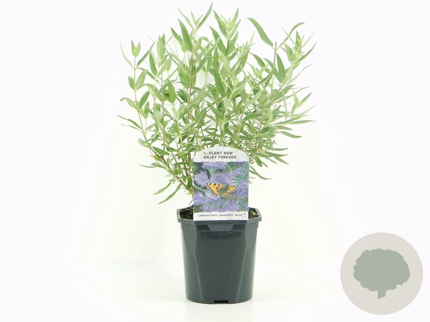 | Toelichting | De Blauwe spirea (Caryopteris cland. 'Heavenly Blue') is een prachtige struik met blauwe bloemen die bloeien in augustus en september. Deze plant wordt 60-90 cm hoog en gedijt het beste in de zon op zandgrond of neutrale grond. |