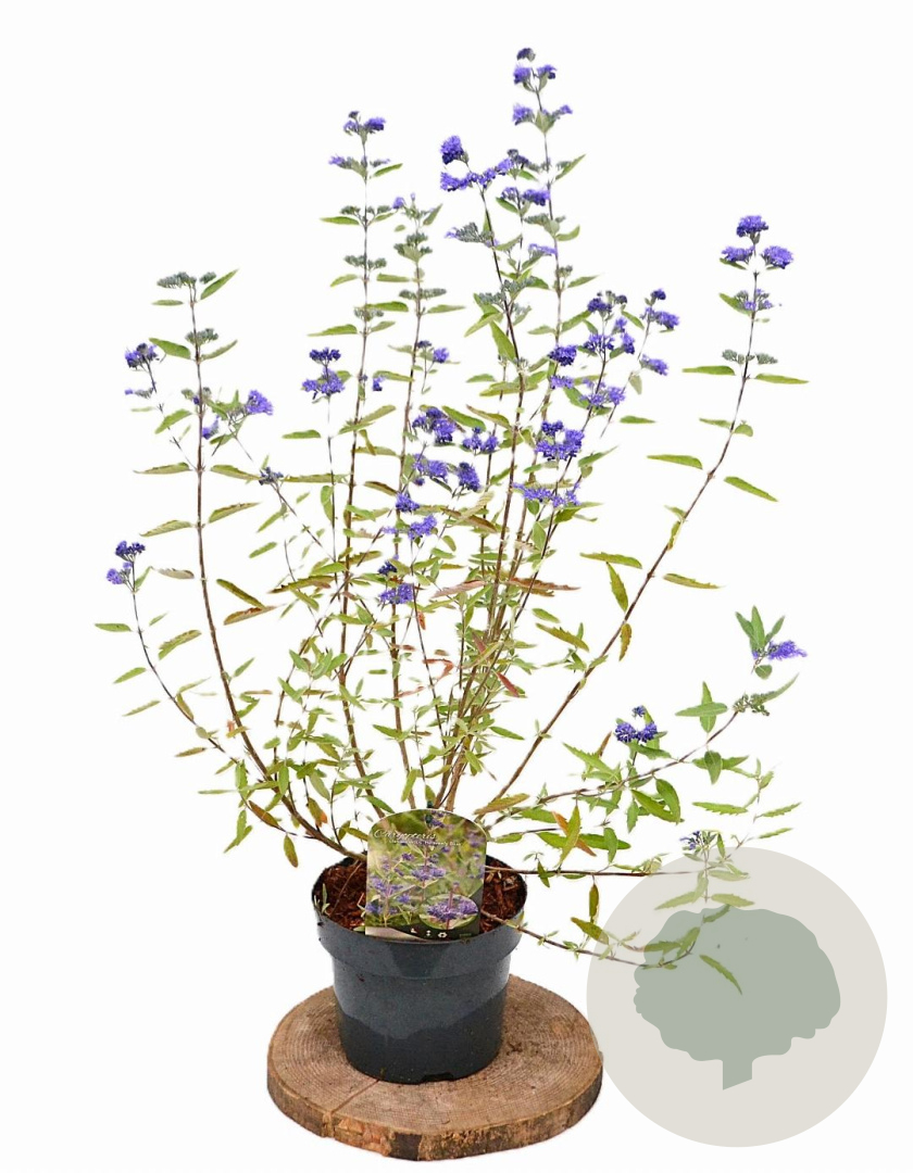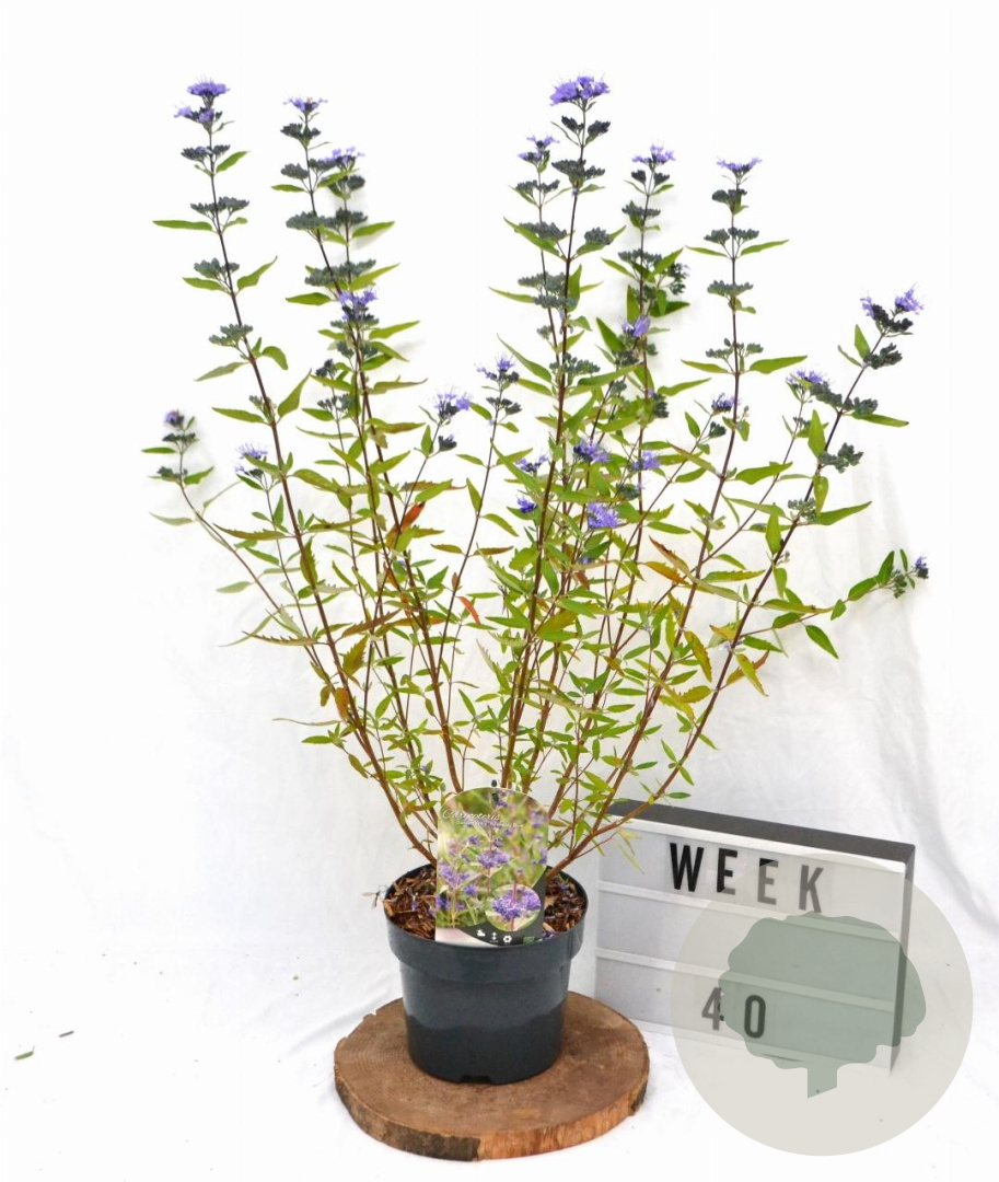 | Toelichting | De Blauwe spirea (Caryopteris cland. 'Heavenly Blue') is een prachtige struik met blauwe bloemen die bloeien in augustus en september. Deze plant wordt 60-90 cm hoog en gedijt het beste in de zon op zandgrond of neutrale grond. |