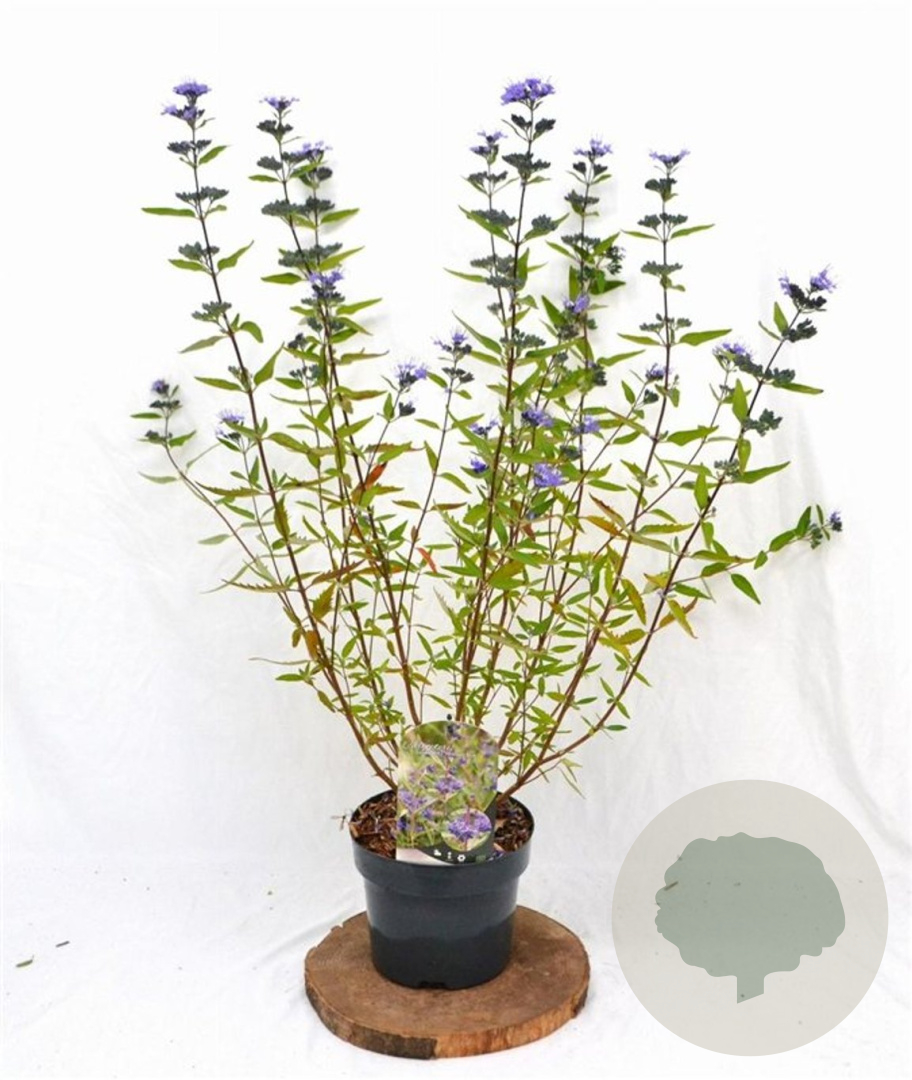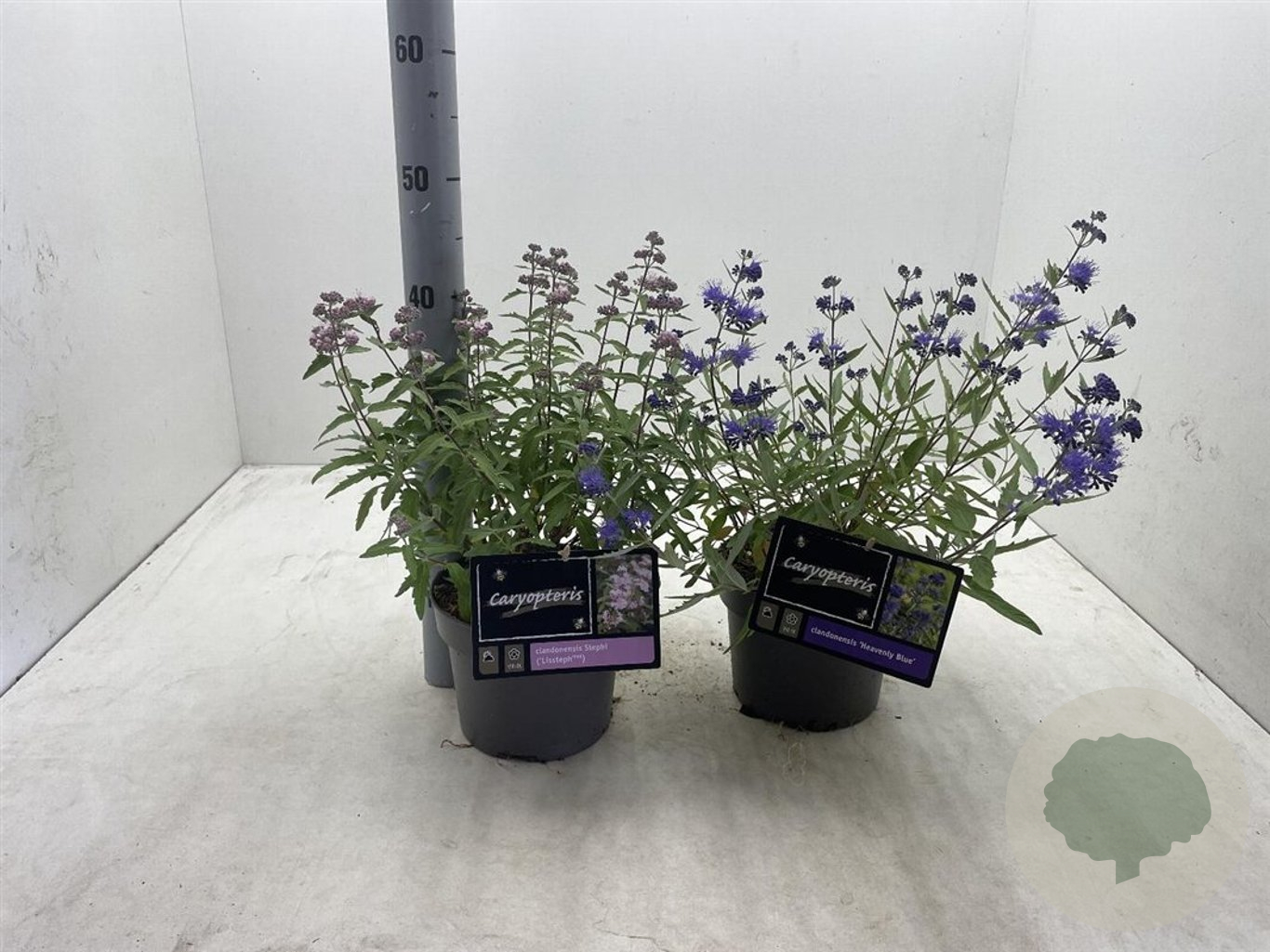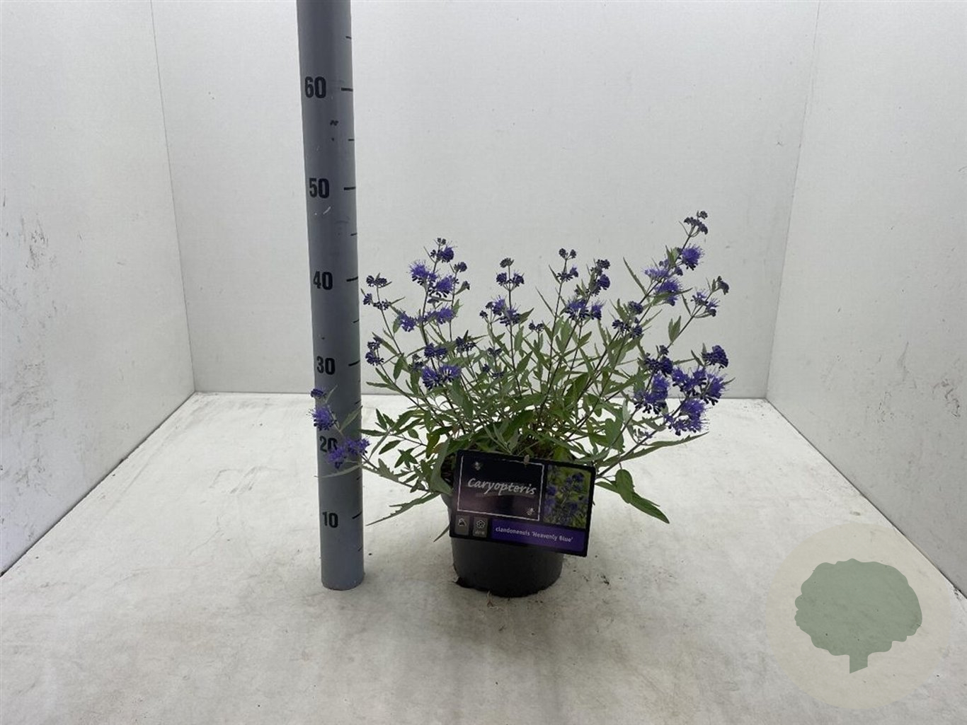 | Toelichting | De Blauwe spirea (Caryopteris cland. 'Heavenly Blue') is een prachtige struik met blauwe bloemen die bloeien in augustus en september. Deze plant wordt 60-90 cm hoog en gedijt het beste in de zon op zandgrond of neutrale grond. |
