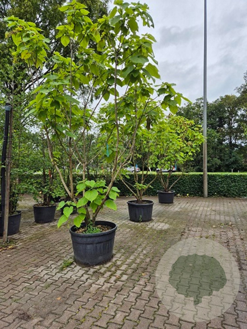 | Toelichting | De Trompetboom (Catalpa bignonioides) is een prachtige boom met witte bloemen in de zomermaanden juni en juli. De boom kan een hoogte bereiken van 800 cm en gedijt het beste in zonnige standplaatsen met goede tuingrond of humusrijke grond. |