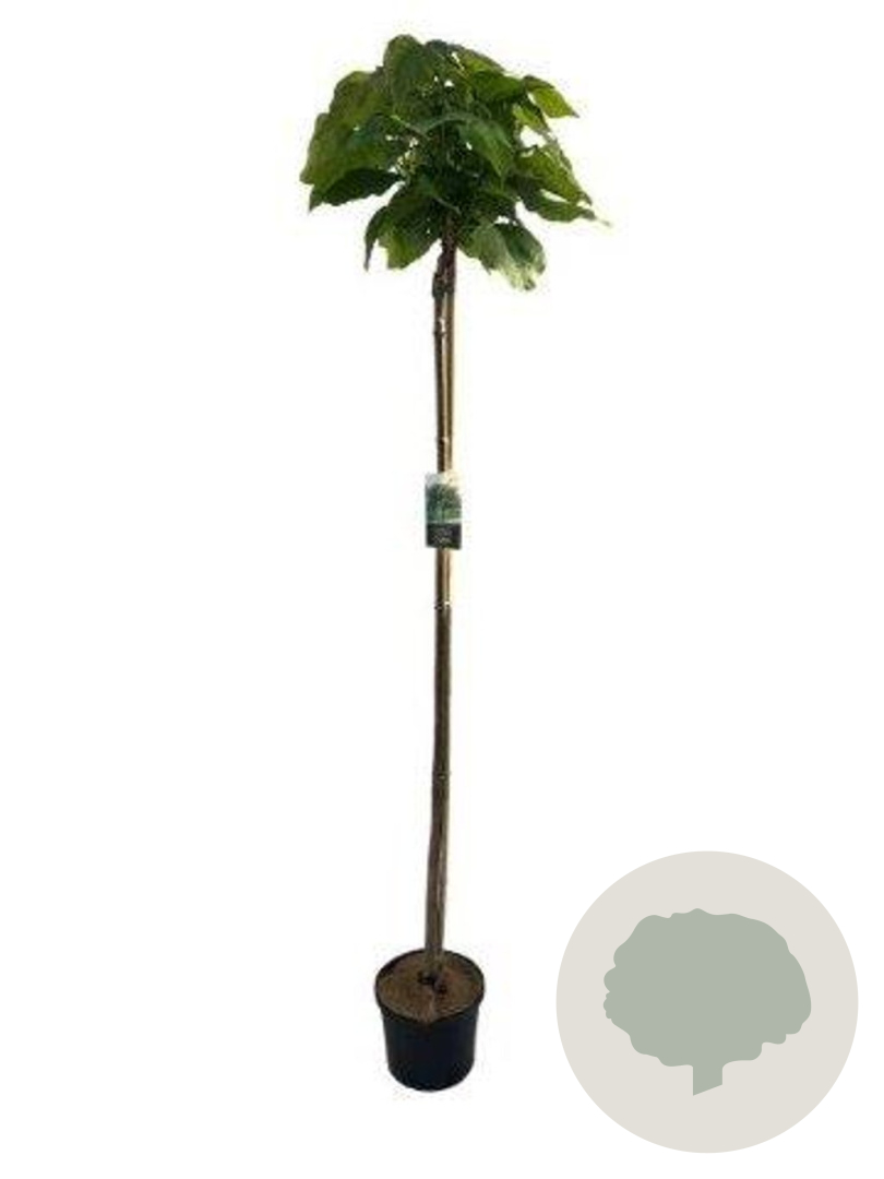 | Toelichting | De Trompetboom 'Nana' is een compacte boom met witte bloemen in de zomer. Het groene blad en de prachtige bloemen maken het een mooie aanvulling in de tuin. Geschikt voor zonnige tot halfschaduwrijke plekken met goede tuingrond of humusrijke grond. |
