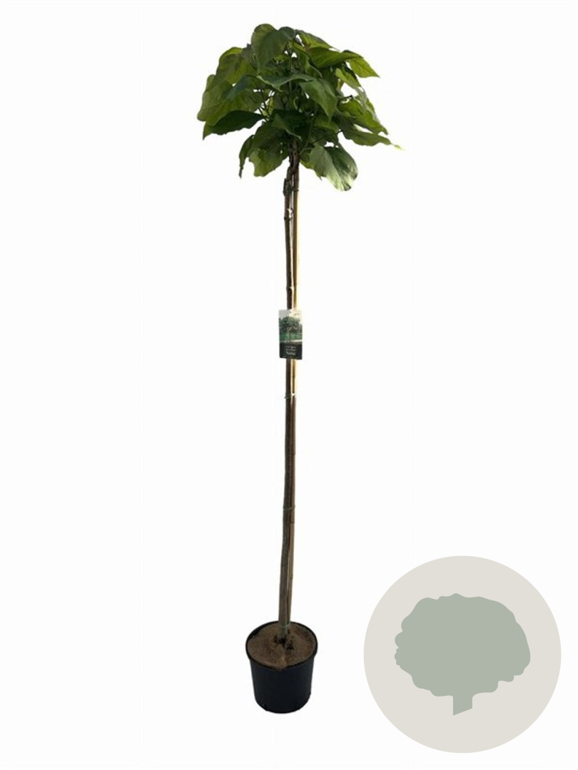 | Toelichting | De Trompetboom 'Nana' is een compacte boom met witte bloemen in de zomer. Het groene blad en de prachtige bloemen maken het een mooie aanvulling in de tuin. Geschikt voor zonnige tot halfschaduwrijke plekken met goede tuingrond of humusrijke grond. |