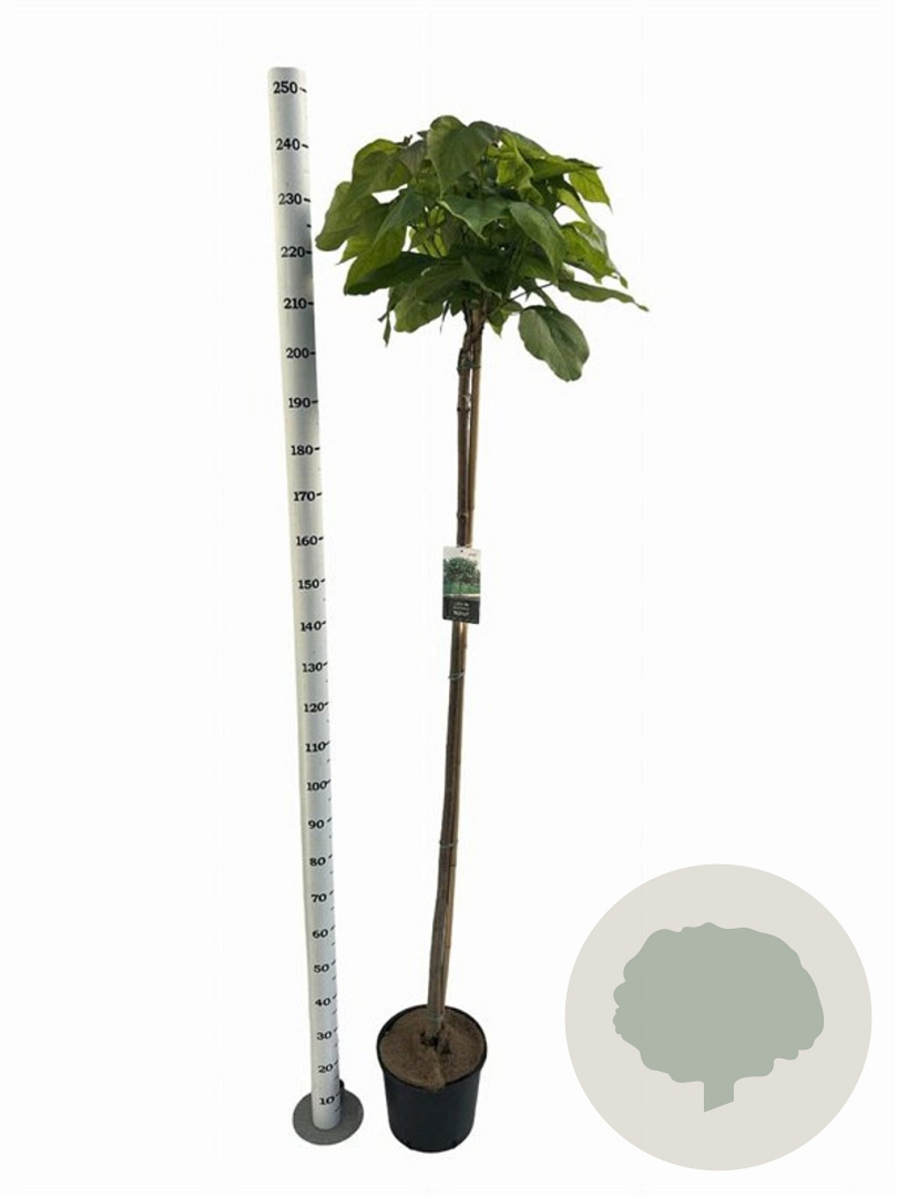 | Toelichting | De Trompetboom 'Nana' is een compacte boom met witte bloemen in de zomer. Het groene blad en de prachtige bloemen maken het een mooie aanvulling in de tuin. Geschikt voor zonnige tot halfschaduwrijke plekken met goede tuingrond of humusrijke grond. |