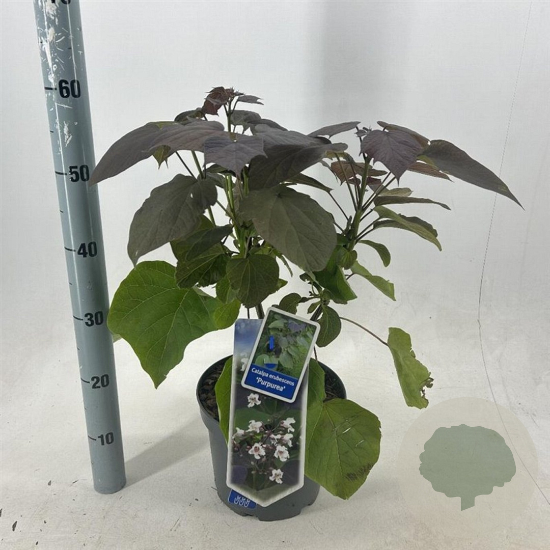 | Toelichting | De Rode trompetboom (Catalpa erubescens 'Purpurea') is een prachtige boom met witte bloemen in juni en juli. Het opvallende purperen blad zorgt voor een kleurrijk accent in de tuin. Deze boom gedijt het beste in de zon of halfschaduw op lichte klei of neutrale, voedselrijke grond. |