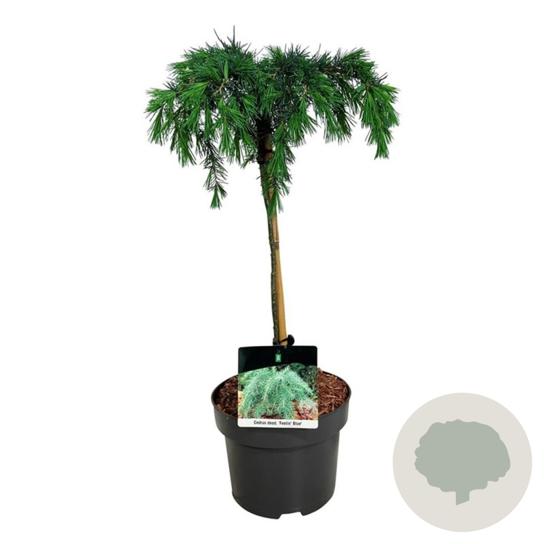 | Toelichting | De Deodarceder, ook wel bekend als Cedrus deodara 'Feelin' Blue', is een prachtige naaldboom met blauwgroen loof. Deze boom gedijt het beste in de volle zon op zandgrond, lichte klei of neutrale grond. Met een volwassen hoogte van 300-400 cm is het een imposante verschijning in de tuin. |