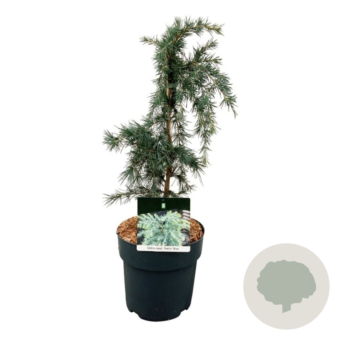 | Toelichting | De Deodarceder, ook wel bekend als Cedrus deodara 'Feelin' Blue', is een prachtige naaldboom met blauwgroen loof. Deze boom gedijt het beste in de volle zon op zandgrond, lichte klei of neutrale grond. Met een volwassen hoogte van 300-400 cm is het een imposante verschijning in de tuin. |
