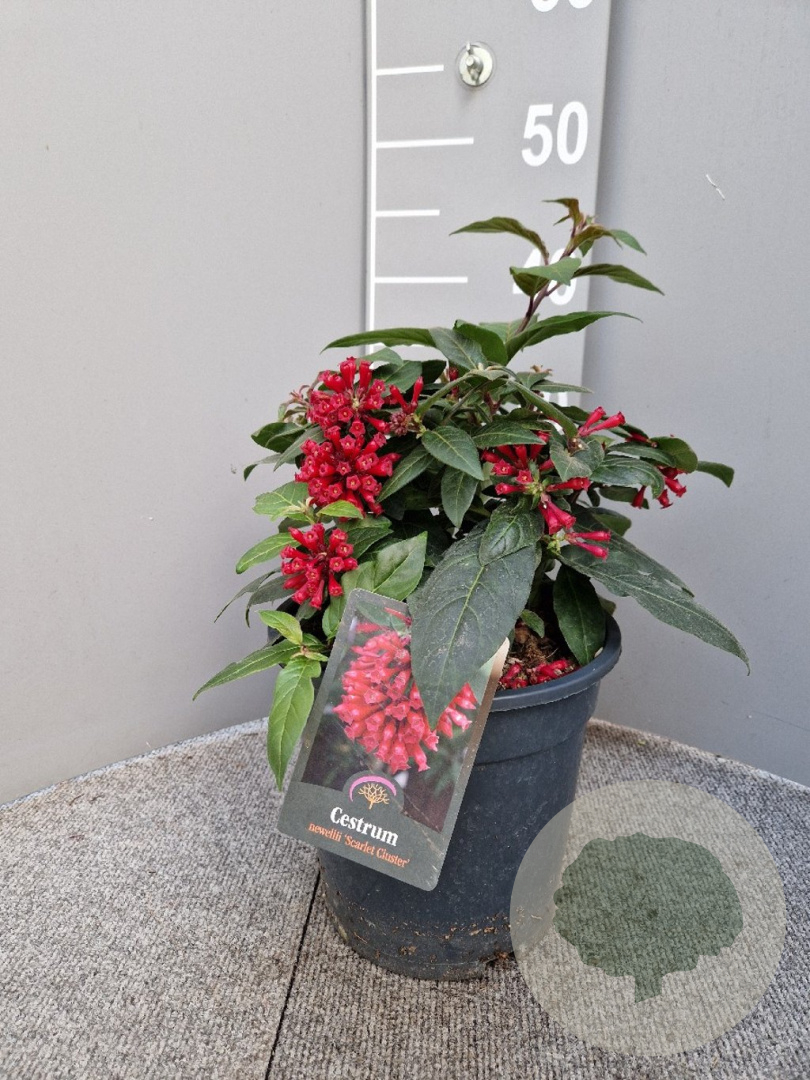 | Toelichting | De Rode Cestrum is een prachtige struik met rode bloemen en groen blad. Deze plant bloeit van juni tot september en gedijt goed in zon en halfschaduw op neutrale, goede tuingrond met humus. |