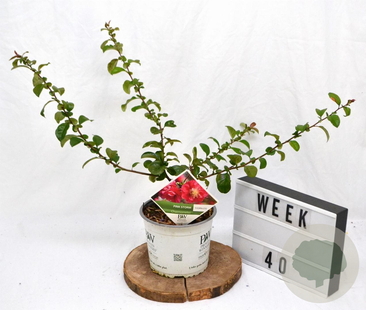 | Toelichting | De Chaenomeles spec. 'Pink Storm', ook bekend als Kwee, is een prachtige struik met roze bloemen in april en mei. Deze struik wordt ongeveer 150 cm hoog en gedijt goed in zonnige tot halfschaduwrijke plekken met lichte klei en neutrale grond. |